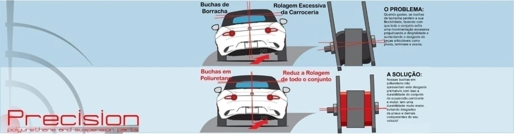- - - Todas Nossas Buchas em Poliuretano Possuem 5 Anos de Garantia Total! A Maior Garantia da América Latina! – Compromisso Precision Suspension Parts Com a Qualidade de Seus Produtos . . . Disponibilizamos para nossos clientes um completo centro automotivo para montagem de nossos produtos, mão de obra com 6 meses de garantia, e excelência no processo de montagem das buchas em poliuretano e demais componentes da suspensão que se façam necessárias as trocas no ato da montagem de nossos produtos. Solicite um orçamento sem compromisso! . . .